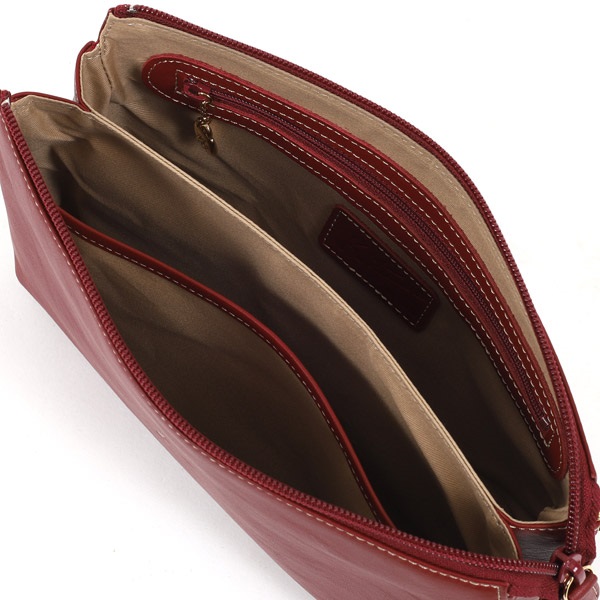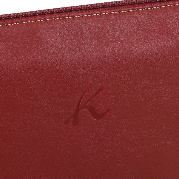 撥水加工を施したウォータープルーフ牛革のショルダーバッグ。裏地にも撥水のワックス加工を施しており、雨の日も気兼ねなくお使いいただけます。内装は2層に分かれており、小ぶりながら長財布が収納できるサイズ感。前面にあしらったさり気ないKマーク素押しがワンポイントです。
