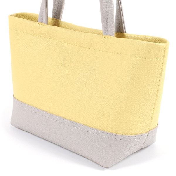 カラーコンビがアクセントのハンドバッグ。同デザインのポーチが付属し、取り外しも可能です。小ぶりですが長財布や折りたたみ傘をゆったり収納できるサイズ感で、内装には細かい物の収納に便利なポケット付き。前側にさり気なくKマーク素押しをあしらいました。合皮素材なので、雨の日も気兼ねなくお使いいただけます。