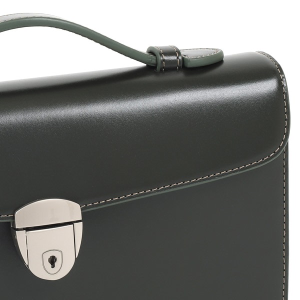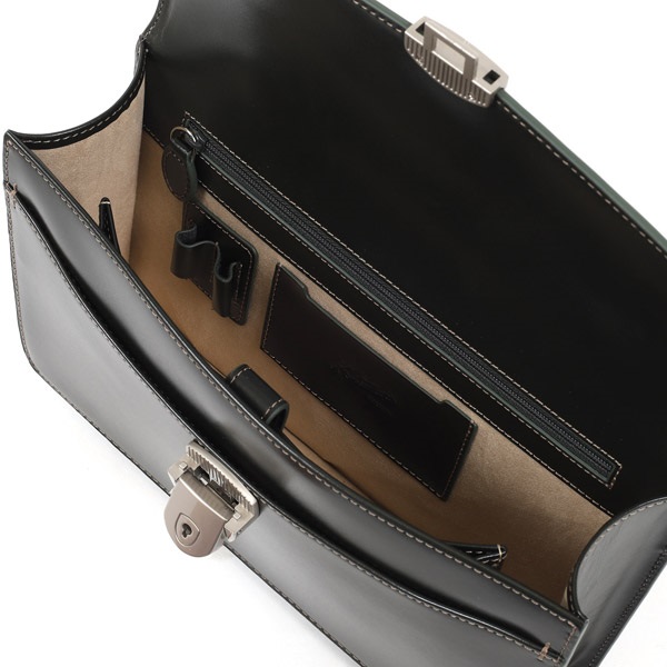 上質なヌメ革を使用した錠前付きセカンドバッグ。従来のセカンドバッグよりコンパクトで、小脇に抱えてもしっくりと馴染むサイズ感になっています。マット(艶なし)仕上げの金具が過度に主張せず、落ち着いた印象で上品さと高級感を演出。デイリーからフォーマルシーンまで、幅広くお使いいただけます。