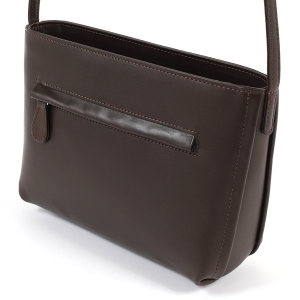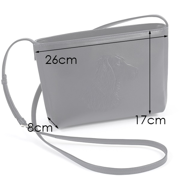 クラシックな雰囲気が上品な牛革のショルダーバッグ。キタムラのショッパーにも描かれている、アイリッシュ・セターの横顔が印象的なデザインで、やわらかな毛並みや、首輪の「KITAMURA」も素押しでしっかりと表現。細部にまでこだわりが詰まっています。口元はファスナー仕様ですが、両脇がオープンポケットになっており、ハンカチやスマホなどすぐに取り出したい小物の収納に便利です。