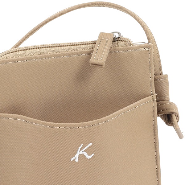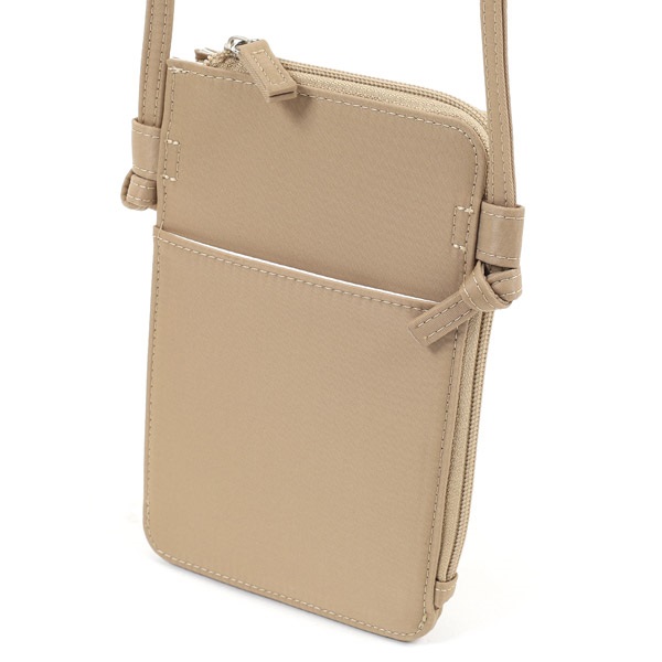 収納スペースが充実したコンパクトなスマホショルダーバッグ。軽量でハリ感のあるナイロン素材を使用しています。口元はL字ファスナーで出し入れしやすく、ポケットは外側に2つ、内側はポケット2つとカード段が付いています。スマホ以外にもパスポートやカードも収納でき、普段使いはもちろん、トラベルシーンにもおすすめです。