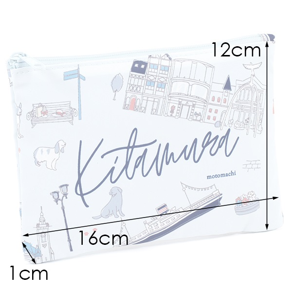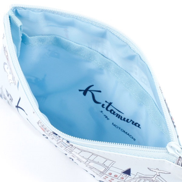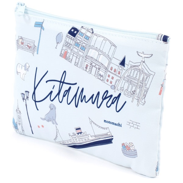 横浜らしさあふれるモチーフ柄をちりばめたポーチ。元町ショッピングストリートをはじめ、中華街や山下公園、馬車道などおなじみの風景のランドマークを可愛らしいタッチのイラストで表現しました。フラットでコンパクトな使いやすいサイズ感。同じ柄のトートバッグ(BN0019)とお揃いでお使いいただくのもおすすめです。