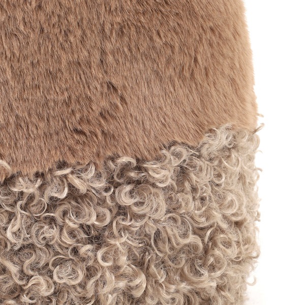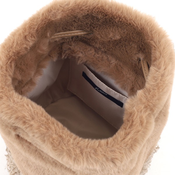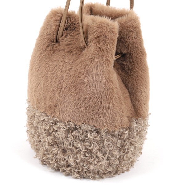 秋冬シーズンを盛り上げるフェイクファー素材の2wayセミショルダーバッグ。ころんとしたフォルムがかわいらしい巾着型です。やわらかな手触りのレッキスと、くるくるした巻き毛が特長のカルガンラムのフェイクファーを組み合わせた異素材コンビがポイント。内側にポケットが付いており、小物の収納に便利です。