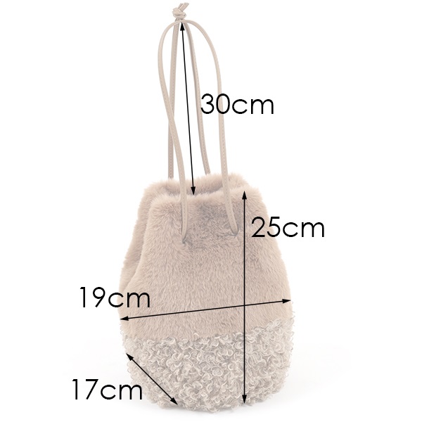 素材: フェイクファー×合皮/裏地 ポリエステル仕様:【口開き】巾着【内ポケット】1