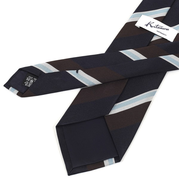 やわらかで上品な光沢感が魅力の、シルク100%ストライプ柄(オルタネイトストライプ)ネクタイ。最高等級6Aランクのシルク糸に独自撚糸を加え、とろみのある質感に仕立てました。高級ウール芯地を使用し、手縫いでひとつひとつ丁寧にお作りしています。熟練の技術でやわらかく縫製しているため、くたっとせず復元力があり長持ち。ディンプルが作りやすいのもポイントです。