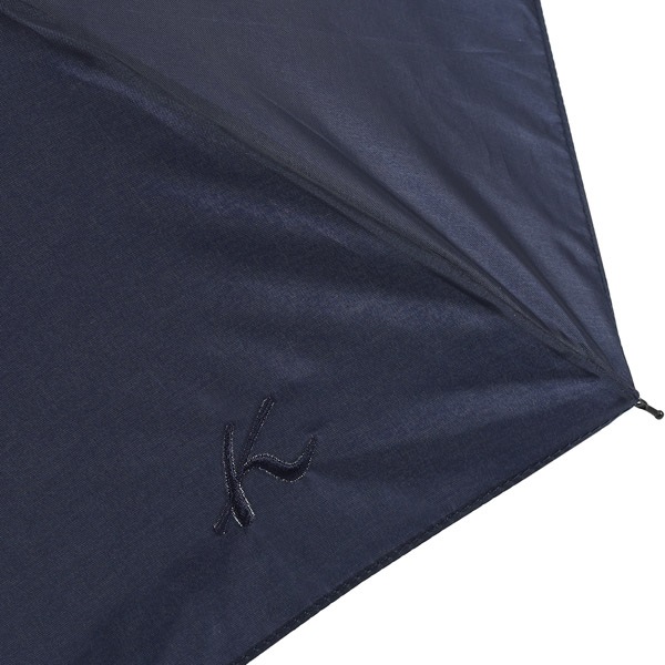 雨の日のコーディネートを明るく彩るカラーコンビの折りたたみ雨傘。上品で優しいパステル調カラーと、フォーマルシーンでも使いやすいベーシックカラーをご用意しています。シンプルなデザインに、Kマーク刺繍がワンポイント。傘袋は口元を絞ったときのフリルがかわいい巾着タイプです。