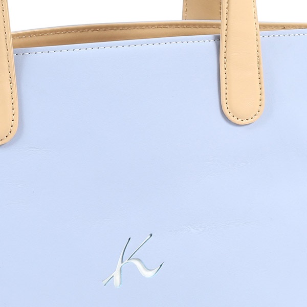 革の素材感をいかしたプレーンなデザインのセミショルダーバッグ。自然環境で育てられた稀少な牛革を贅沢に使用しており、天然素材独特の風合いをお楽しみいただけます。前側にあしらったKマークがアクセント。A4対応で、バインダーを縦に入れてぴったり入るサイズ感です。背面には大きな外ポケットが付いており、どちらを正面にしてもお使いいただけます。