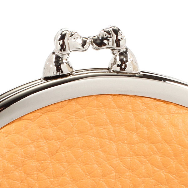 ワンちゃんのシルエットをかたどった口金がポイントの小銭入れ。2匹のワンちゃんが鼻を合わせるように向き合ったデザインは、キタムラオリジナル。ワンちゃんのシルエットだけでなく、目や鼻といったお顔のパーツやふわふわとした毛並みまで表現するこだわりは、ワンちゃんを愛するキタムラだからこそのこだわりが詰まっています。手のひらに収まるサイズ感で、アクセサリーケースや小物入れとしてもおすすめです。