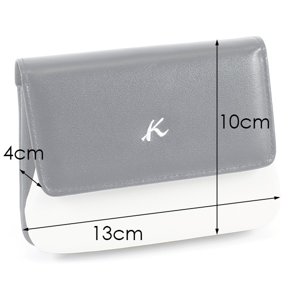 袋縫いの仕立てが優しい印象の二折財布。ふっくらとした触り心地で、がま口の小銭入れを包み込むようなかぶせが特徴です。カード類やたたんだお札は内ポケットに収納可能。かぶせ裏にもポケットが付いており、レシート、クーポンなどを分けて収納できます。かぶせのKマーク刺繍がワンポイント。カラーコンビが可愛らしく、バリエーション豊富で選ぶ楽しさが広がります。