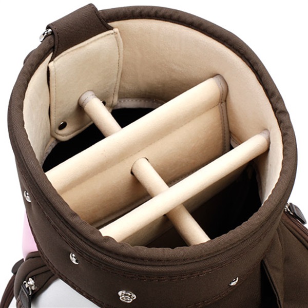 豊富なポケットと使い勝手を考えた機能性が魅力のユニセックス用キャディーバッグ。ゴルフボールとフラッグをデザインしたオリジナルのKマークがワンポイントです。付属のトートバッグは、ペットボトルが入る内ポケットや、出し入れしやすい4か所の外ポケットなど、ラウンドバッグに便利。普段使いにもおすすめです。