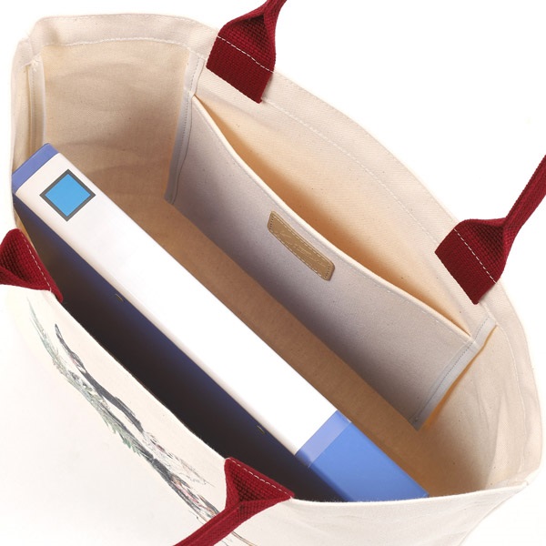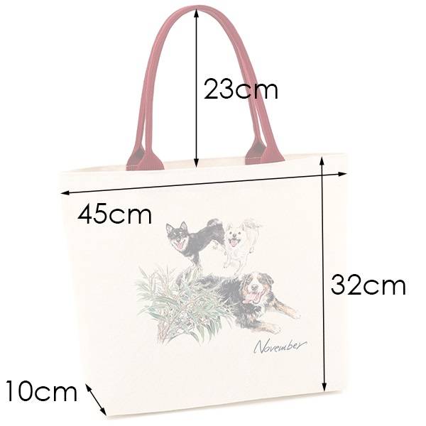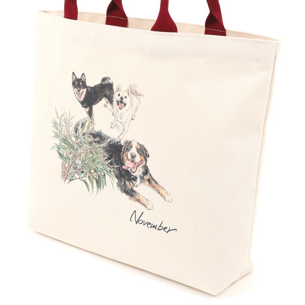 キタムラオリジナルカレンダーのイラストをプリントしたトートバッグ。12ヵ月の絵柄がシーズンごとに登場します。持ち手は付け根からつまんで縫い合わせ、肩に掛けたり持ちやすいよう丸紐に仕上げました。A4バインダーがゆったり入るサイズ感で、お買い物や荷物が多い日のサブバッグにぴったり。内側には長財布が収納できる吊りポケットが付いています。ポケットにはキタムラロゴ入りの牛革タグをあしらいました。