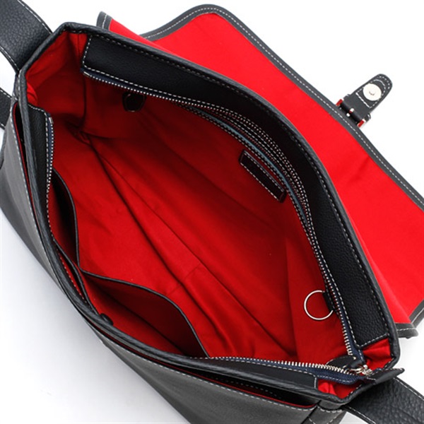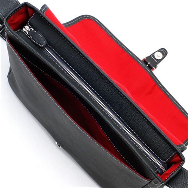 イタリアンレザーでお作りした横型ショルダーバッグ。美しい発色と独特の風合いが魅力です。厚みのある革で耐久性にも優れています。やわらかな手触りと軽さもポイント。A4クリアファイルがぴったり入るサイズ感で、かぶせの中にはファスナーも付いています。