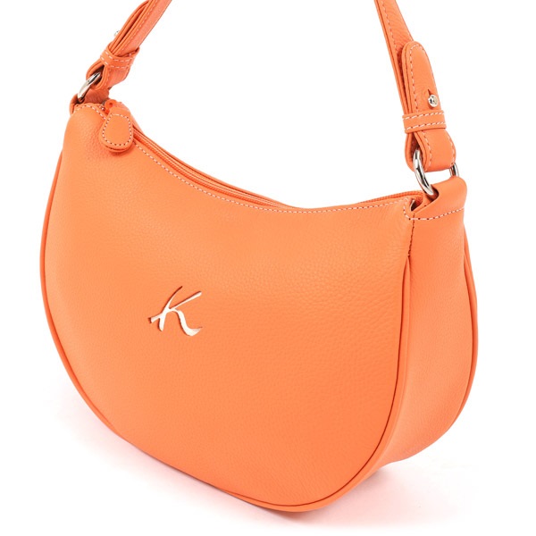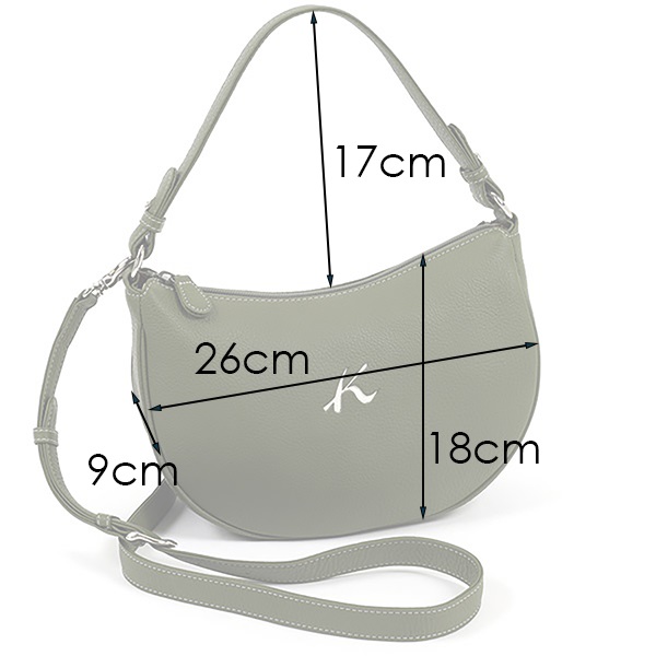 抜き型のKマークがポイントの2wayハンドバッグ。着脱できるショルダーベルト付きで、斜め掛けができます。キズの目立ちにくいシュリンク加工を施した牛革を使用。丸みのあるやさしいフォルムは、カジュアルなデイリー使いから、きれいめなおでかけスタイルまで、幅広いシーンにおすすめです。