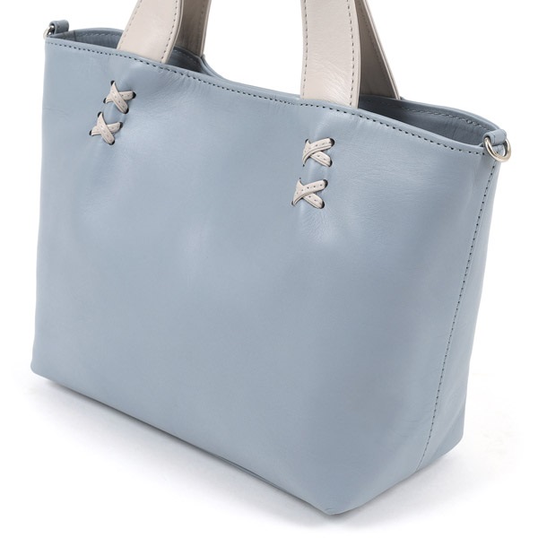 持ち手付け根の革飾りがポイントの2wayハンドバッグ。小ぶりながら、長財布がゆったり入るサイズ感です。やわらかな牛革を使用し、カジュアルな印象に仕上げました。取り外し可能なショルダーベルト付きで、斜め掛けでもお使いいただけます。