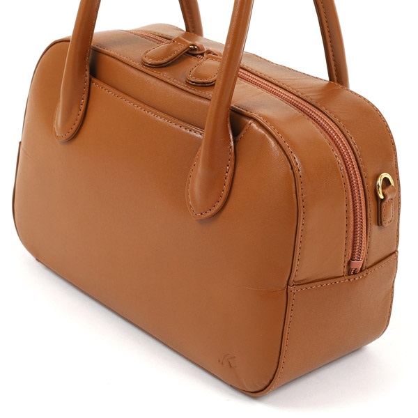 きちんと感のあるスクエアフォルムの2wayハンドバッグ。セミショルダーバッグとして持てる長さのチェーンが付属。繊細な輝きが上品な華やかさをプラスします。チェーンは着脱できますが、あえて垂らしたままでもアクセントになります。長財布やポーチがゆったり入り、普段使いしやすいサイズ感。前面の右下に、さり気なくKマーク素押しをあしらいました。