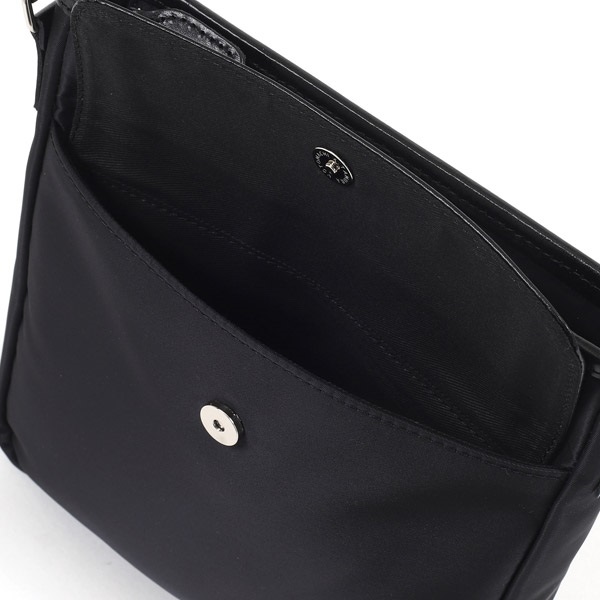 牛革×ナイロンコンビのショルダーバッグ。カジュアルなナイロン素材に、牛革が洗練された上品さをプラスしています。ナイロンをメイン素材にすることで、軽い仕上がり。長時間の使用でも肩が疲れにくいため、アクティブなお出かけにぴったりです。裏面の外ポケットは、スマホやパスケースなど、必要な時にすぐに取り出したい小物の収納に便利です。