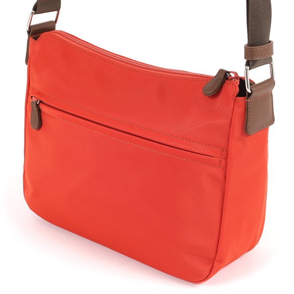 機能性にこだわったナイロン素材のショルダーバッグ。斜め掛けにして持ち歩きしやすいサイズ感と軽さが特徴です。前面・背面両方にファスナーポケット付き。ファスナー引き手部分には牛革を使用し、デザインにメリハリを出しました。
