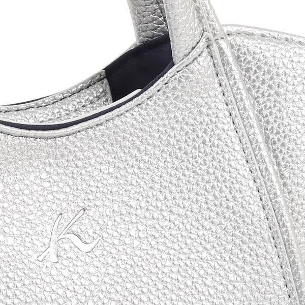 持ち手から本体までつながるカラーパイピングがアクセントの2wayハンドバッグ。着脱可能なショルダーベルト付きの2wayタイプです。前面にはワンポイントにKマーク素押しをあしらいました。小ぶりなサイズ感で、ちょっとしたお出かけにおすすめ。また、合成皮革を使用しているので雨でも安心してお使いいただけます。