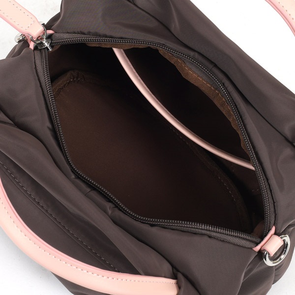 軽くて機能的なナイロン素材の2wayハンドバッグ。着脱できるショルダーベルト付きで斜め掛けもできます。長くお使いいただけるよう、持ち手やファスナー引き手など負荷のかかりやすい部分には牛革を使用しました。フロントにあしらった鋲付きのKITAMURAロゴ入り革タグがワンポイント。コロンとしたフォルムがかわいらしく、本体が300g以下と軽量で、普段使いにぴったりなカジュアルバッグです。