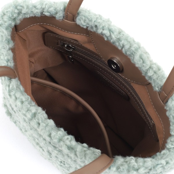 季節感が楽しめるボア素材のハンドバッグ。KITAMURAロゴの箔押しが入ったタグがワンポイントです。小ぶりなサイズ感で、ちょっとそこまでの身軽なお出かけにぴったり。細かいものは内ポケットに分けて収納できます。口元はマグネット仕様。コーディネートのアクセントになるカラーも魅力です。