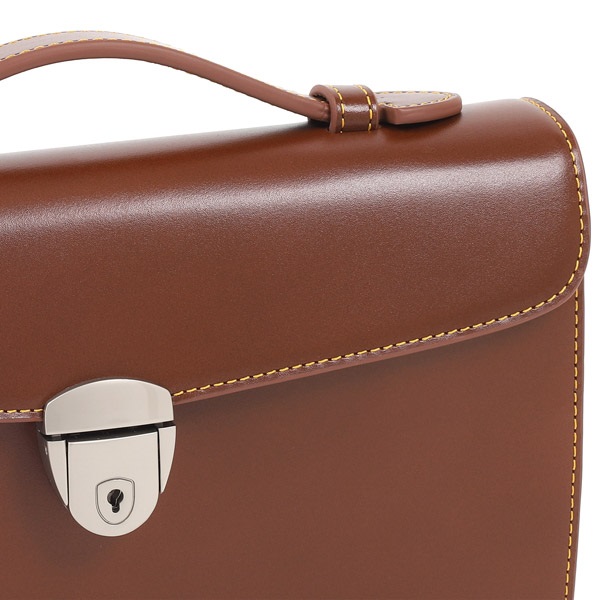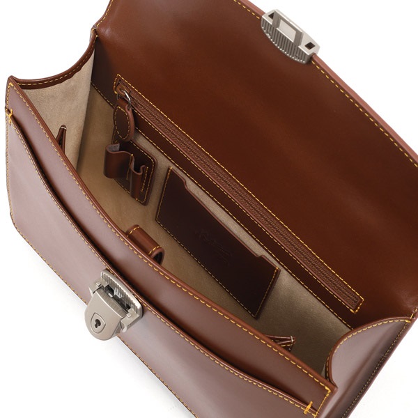 上質なヌメ革を使用した錠前付きセカンドバッグ。従来のセカンドバッグよりコンパクトで、小脇に抱えてもしっくりと馴染むサイズ感になっています。マット(艶なし)仕上げの金具が過度に主張せず、落ち着いた印象で上品さと高級感を演出。デイリーからフォーマルシーンまで、幅広くお使いいただけます。
