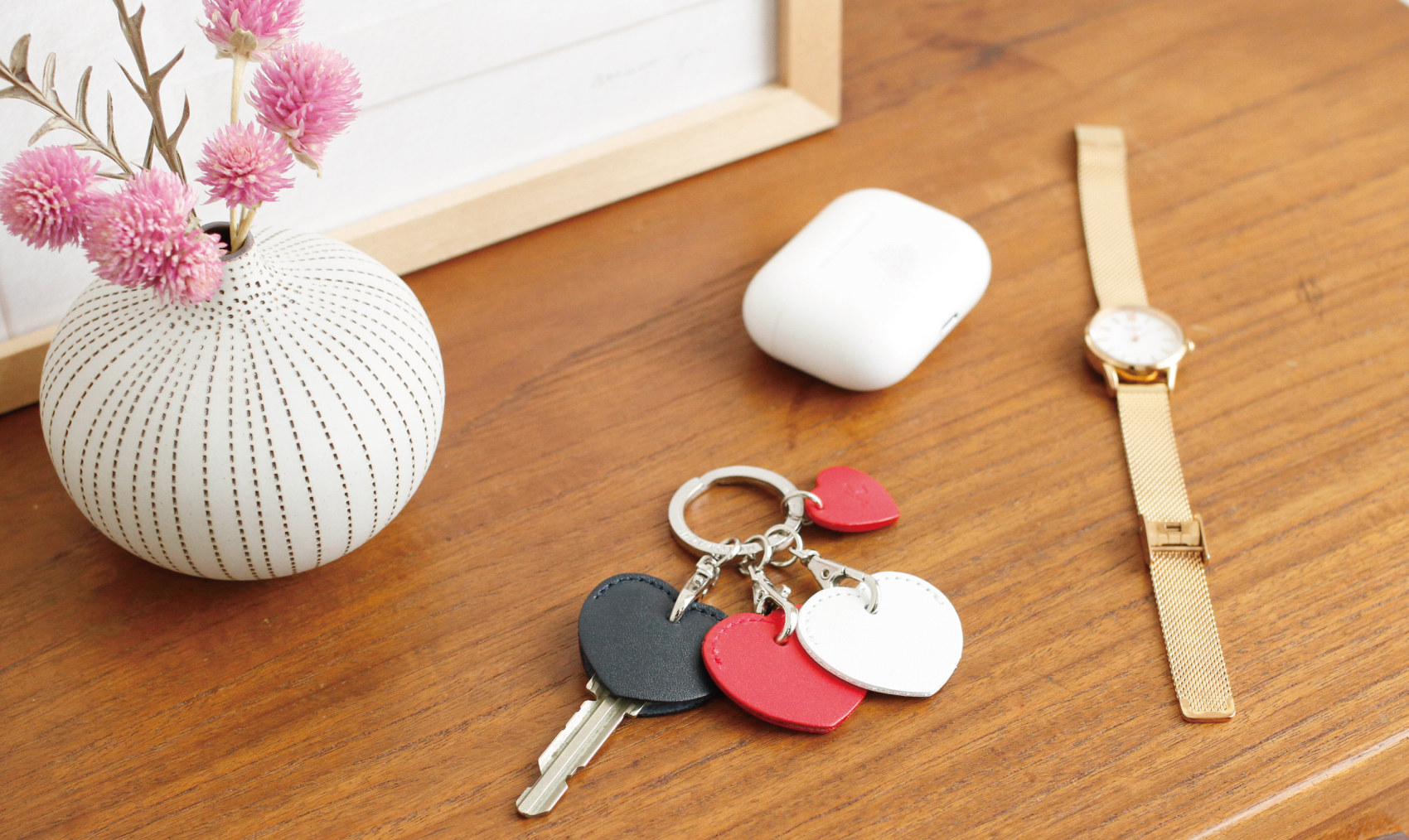 デイリーでお使いいただけるハンカチや、ハートが可愛いキーホルダーなどがおすすめです。