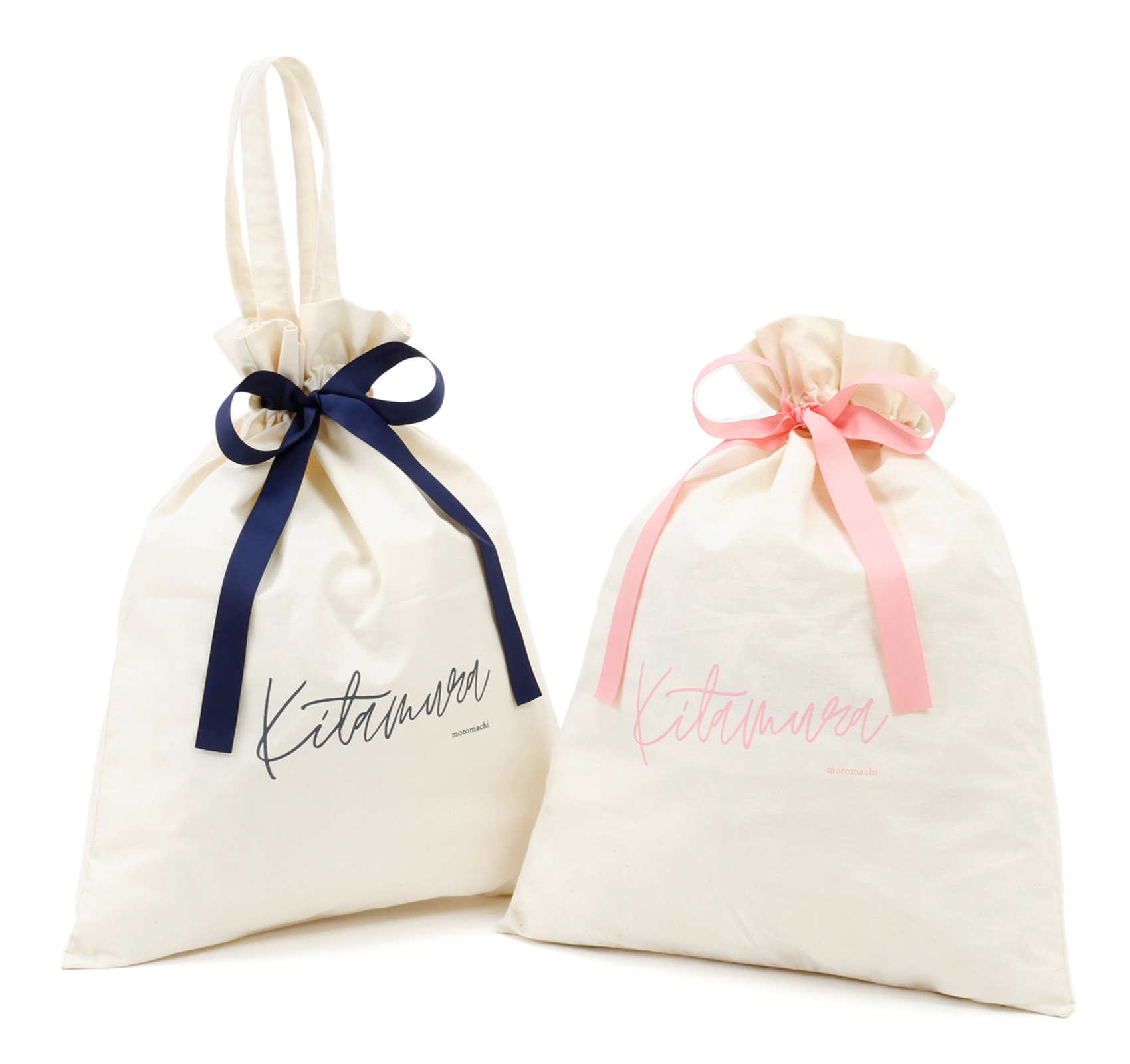 トートバッグとしても使える、手書き風ロゴがかわいい巾着バッグにお入れしてご用意しております。